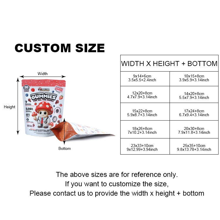 | Customization | Sizes, thickness, printing, logo, zipper, valve available |