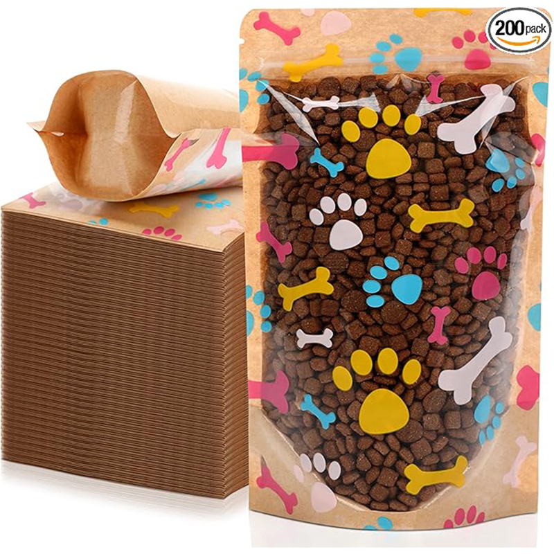Quality Materials: These bags are made of kraft paper and plastic, the bottom of the dog treat bag is thickened to increase the load-bearing capacity of the packaging; They are reusable and with good sealing, the inner and outer coatings make it waterproof and moisture-proof, which can keep the product fresh.